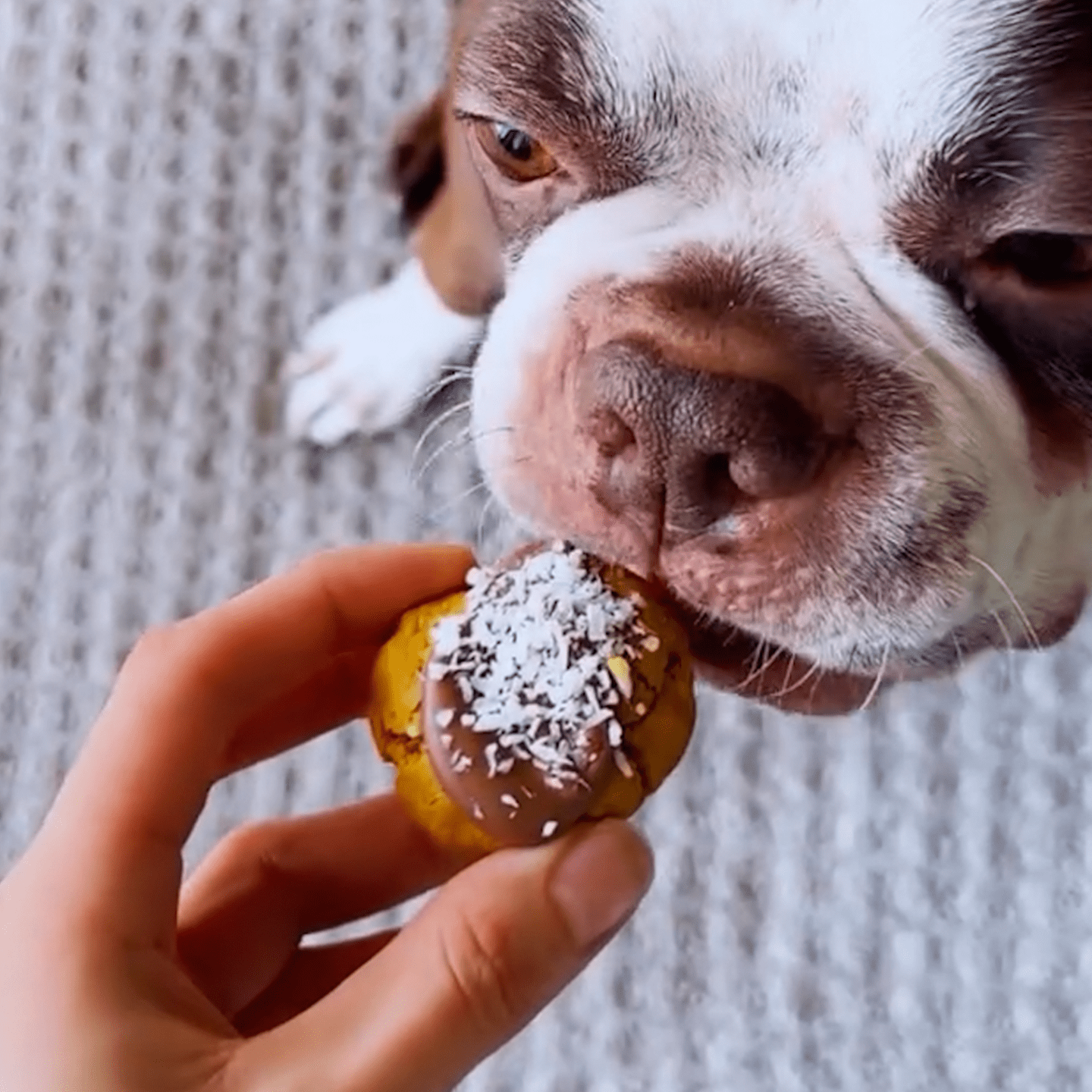Soft, peanut buttery bites with a rich carob center and a snowy crown. The perfect holiday treat that supports healthy skin and a glossy coat thanks to Kodiak’s omega 3 boost.