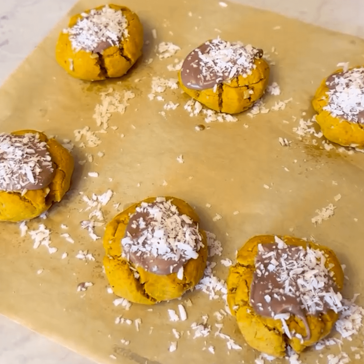 Snowy thumbprint treats with a carob center and an omega powered glow.